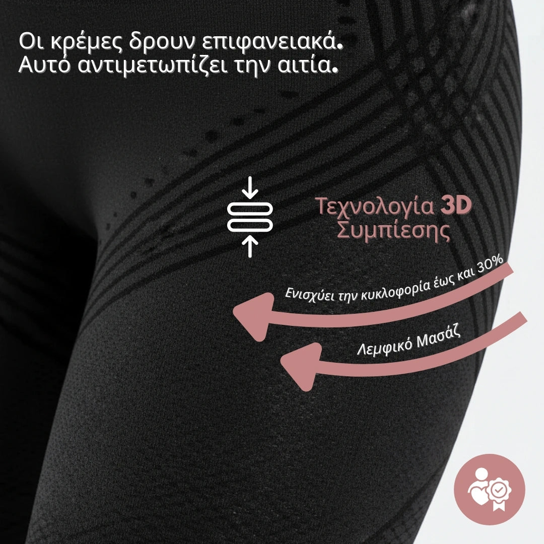Οι τρισδιάστατες γραμμές διαμόρφωσης είναι στρατηγικά τοποθετημένες για να συμπιέζουν τους μηρούς και τους γλουτούς, αυξάνοντας τη ροή του αίματος κατά 30% .