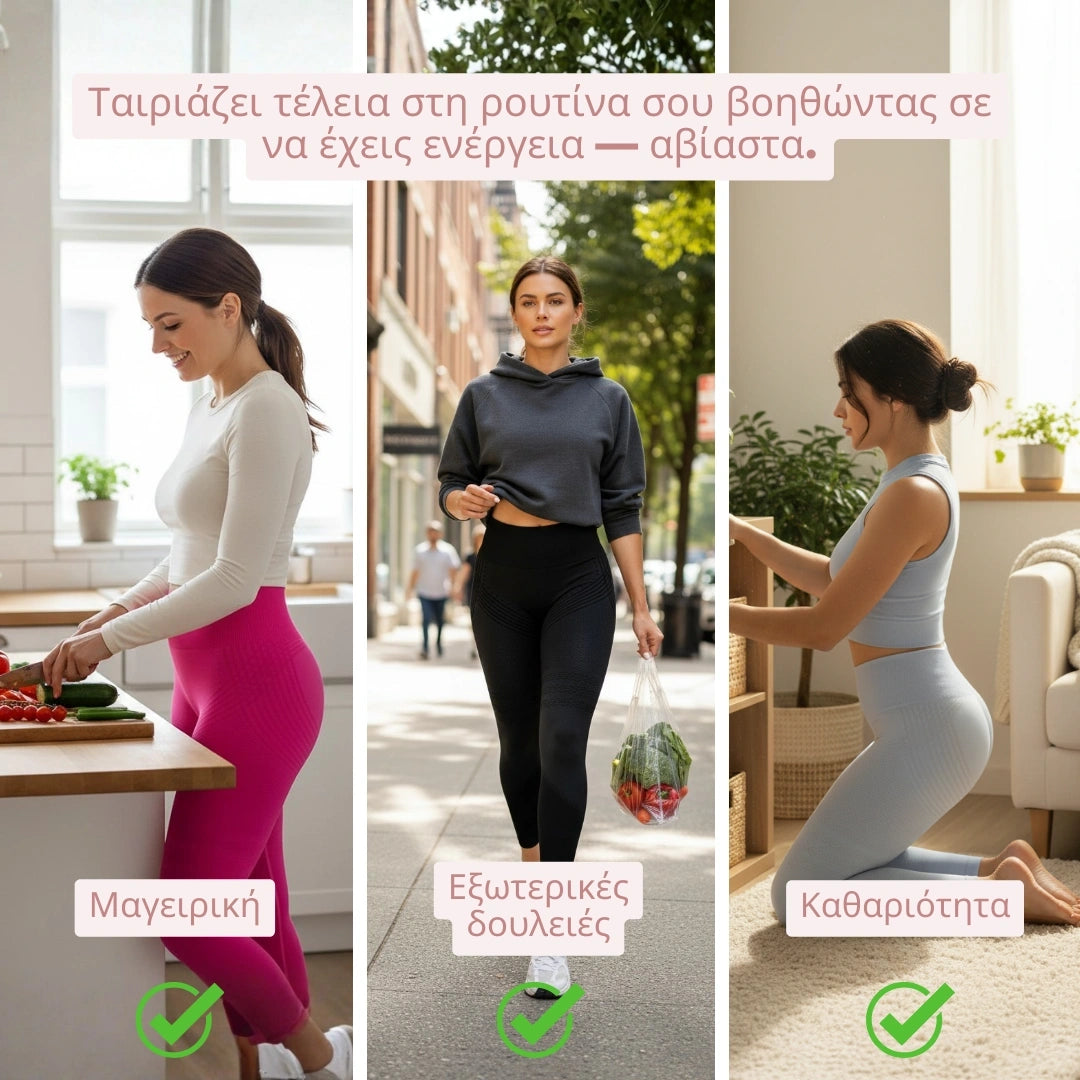 - Αποτέλεσμα 3 σε 1: Λειαίνει την κυτταρίτιδα, ανασηκώνει τους γλουτούς και ισιώνει την κοιλιά — χωρίς κρέμες ή ακριβές θεραπείες